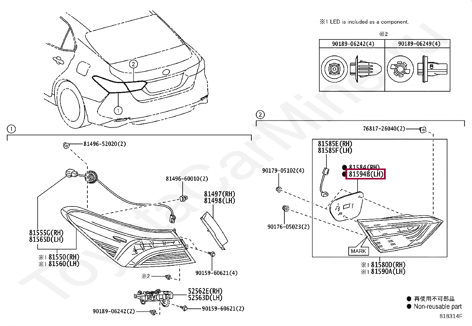 81592-33350, PACKING, REAR LAMP LH