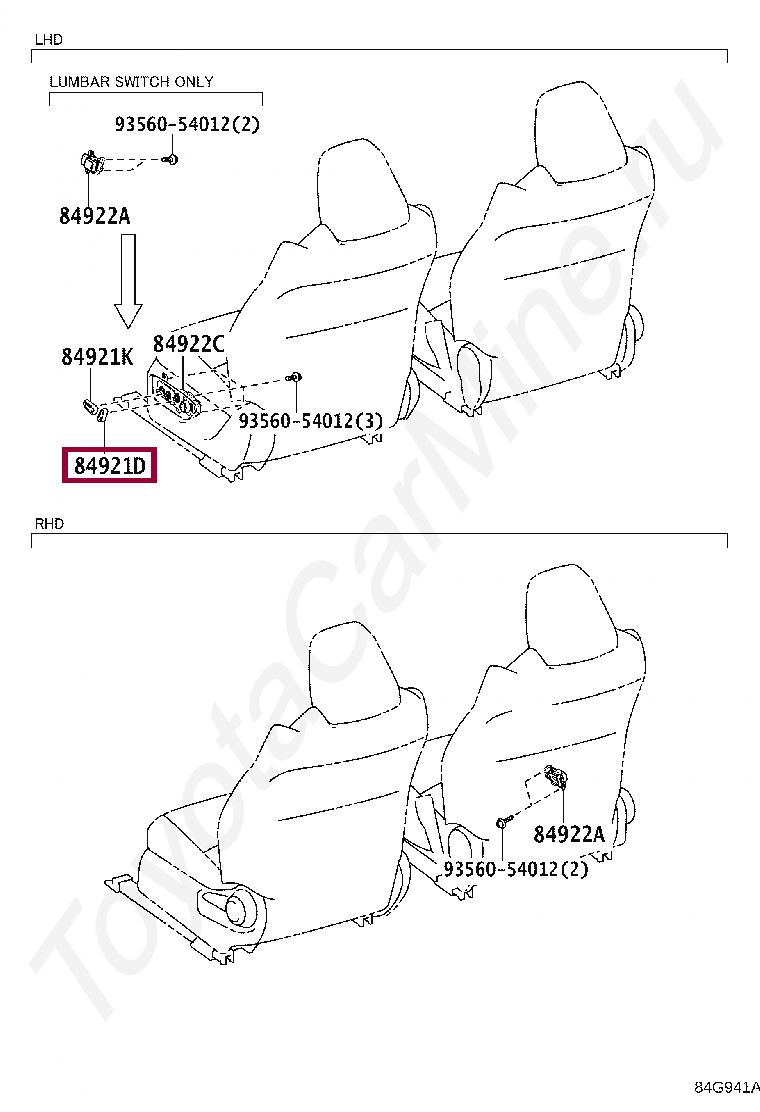 84921-33180-C0, KNOB, POWER SEAT SWITCH, LH