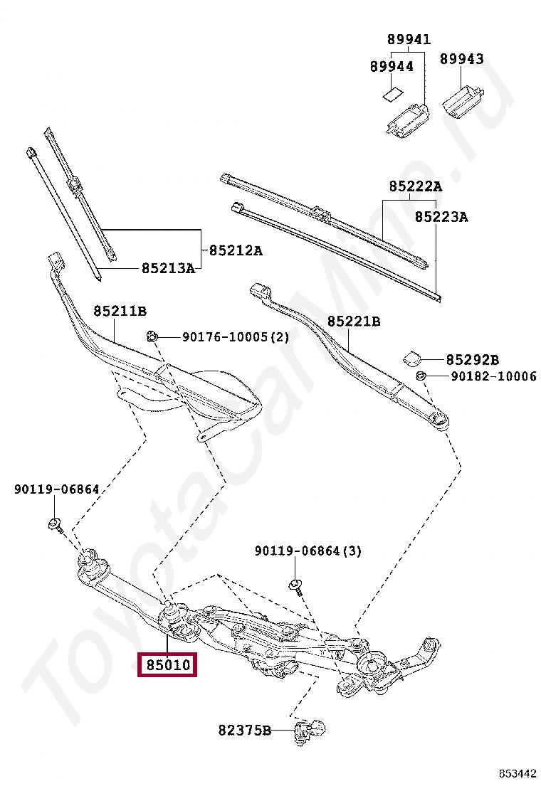 85010-48270, MOTOR & LINK ASSY, FR WIPER