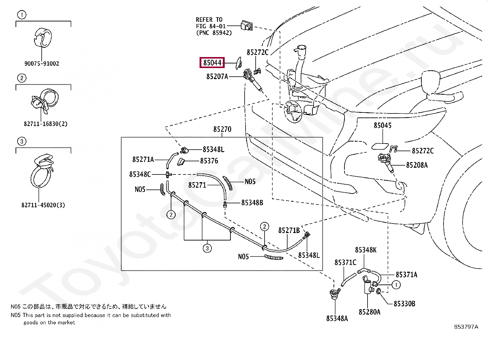 85044-60190-A1, NOZZLE SUB-ASSY, TYPE1 H/LAMP WASHER, RH