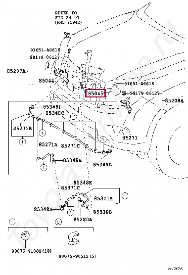 85045-60090-B2, NOZZLE SUB-ASSY, TYPE1 H/LAMP WASHER, LH