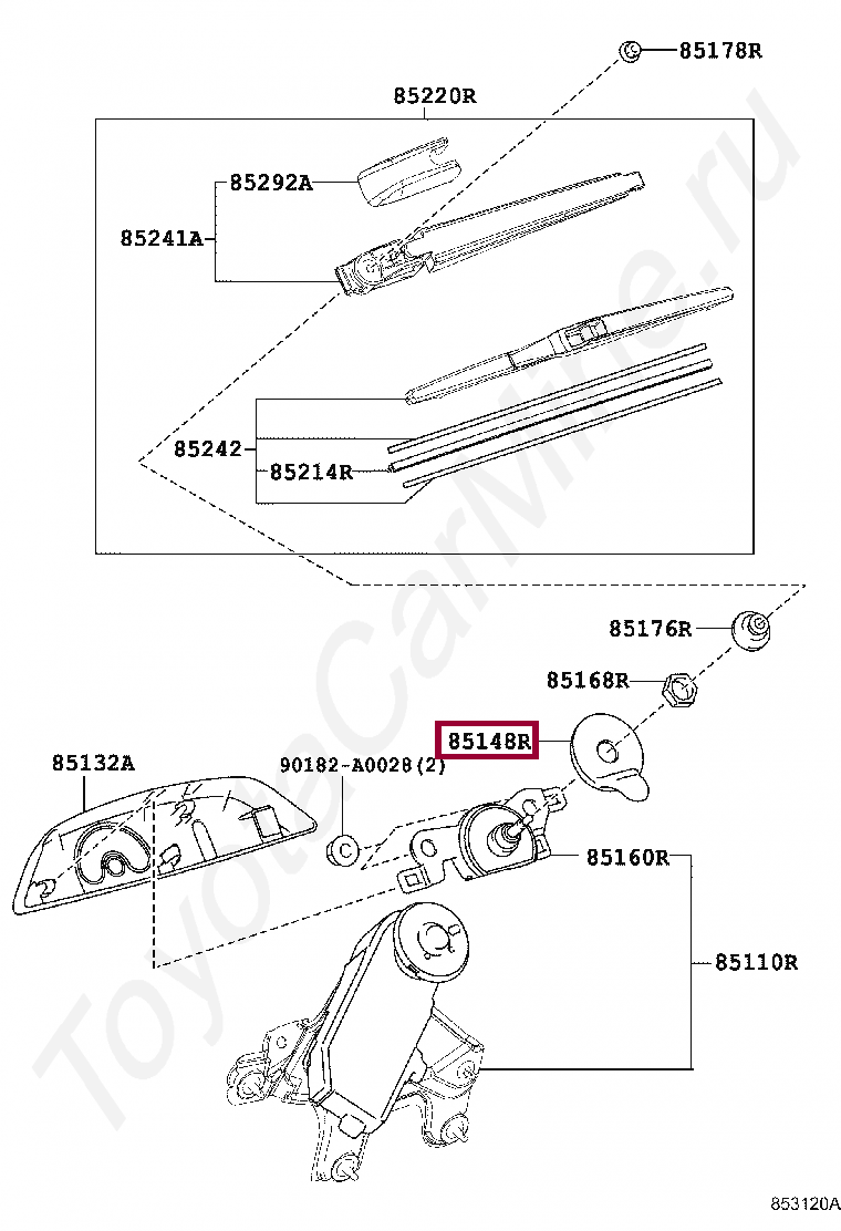 85133-0E020, NUT, W/WASHER PACKING, REAR WIPER LINK PIVOT