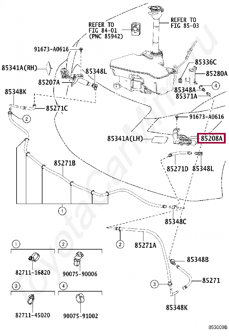 85208-30080, ACTUATOR SUB-ASSY, HEADLAMP WASHER, LH