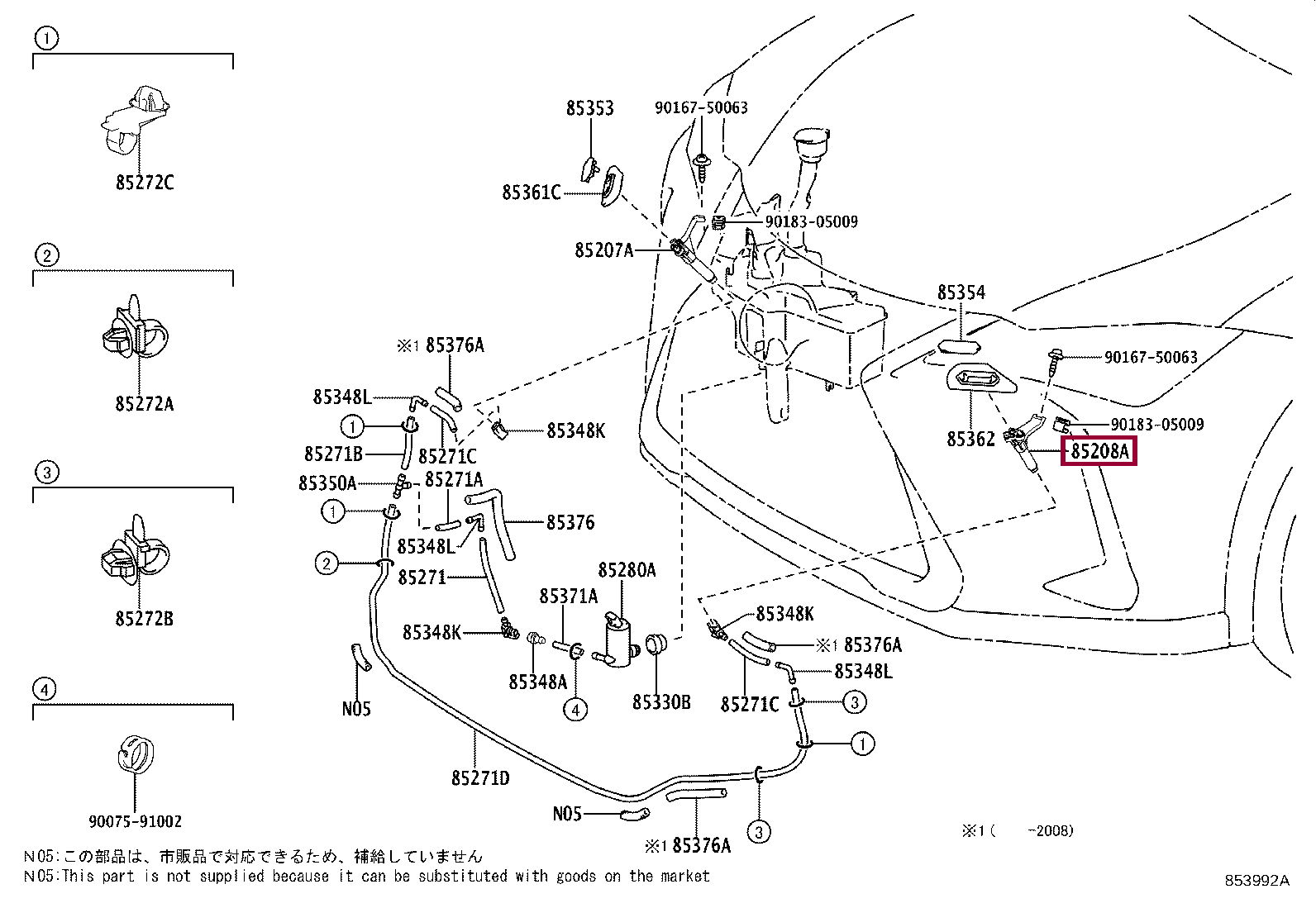 85208-76040, ACTUATOR SUB-ASSY, HEADLAMP WASHER, LH