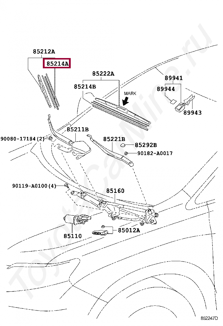 85214-0E030, Резинка стеклоочистителя правая