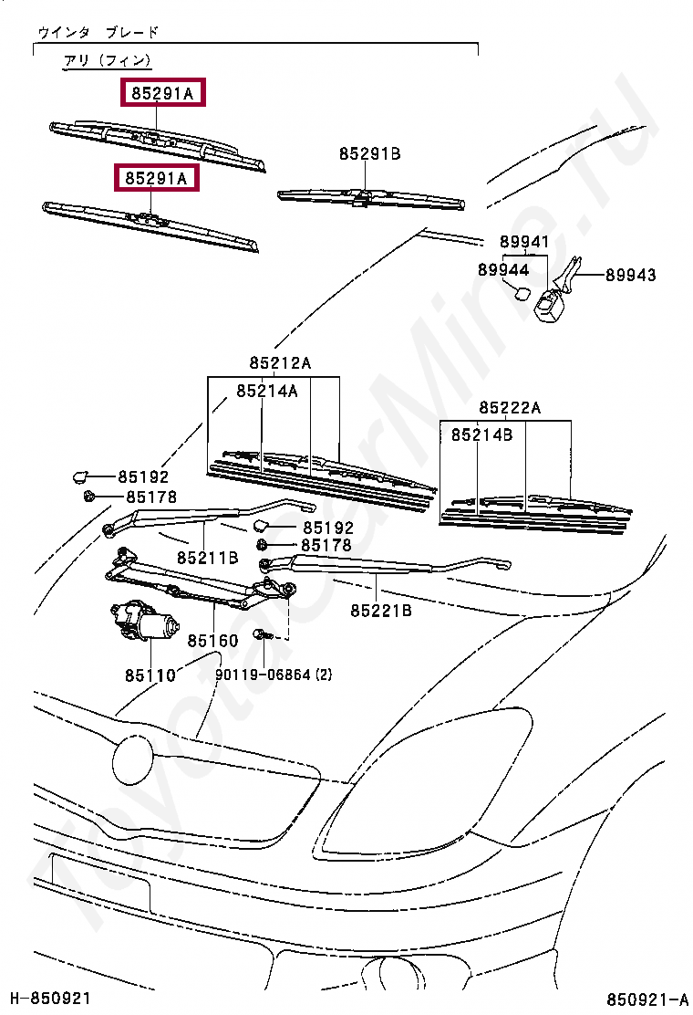 85291-44090, BLADE, FRONT WIPER, WINTER, RH