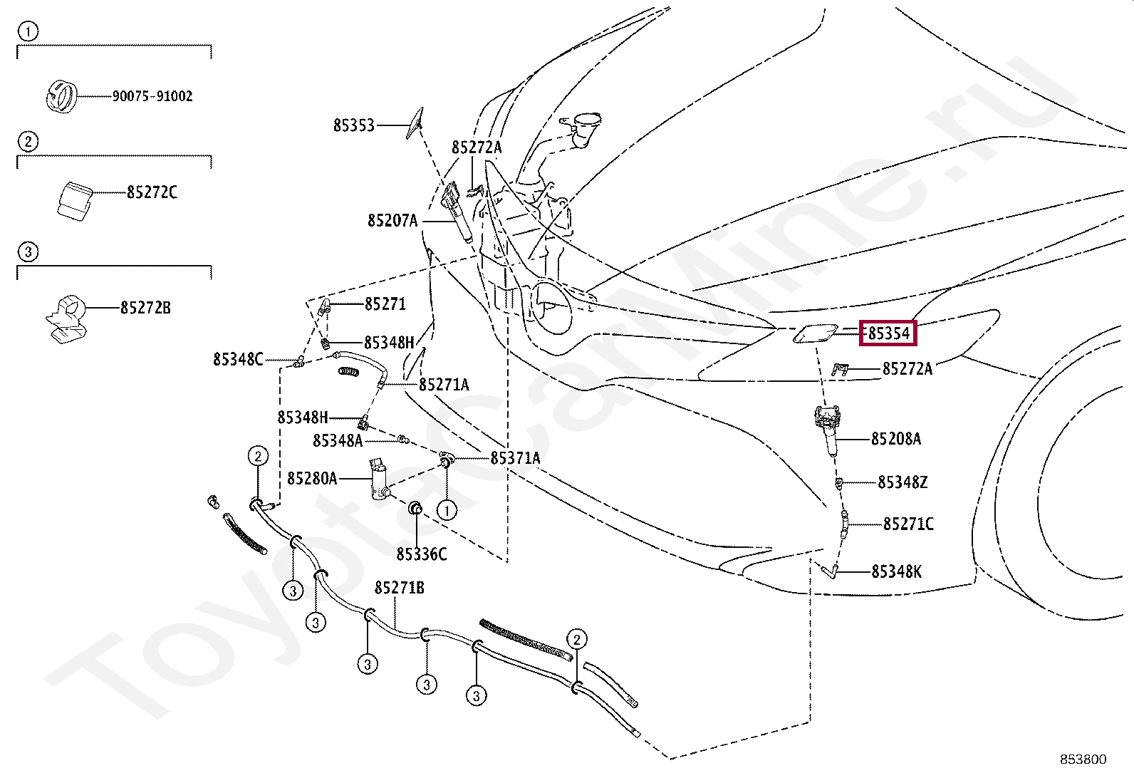 85354-33020-C1, COVER, HEADLAMP WASHER, LH