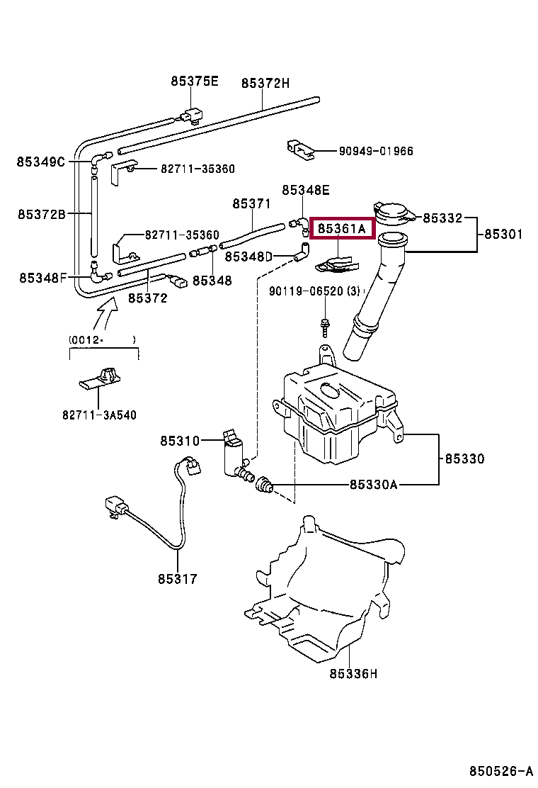 85361-35060, BRACKET, WINDSHIELD WASHER, NO.1