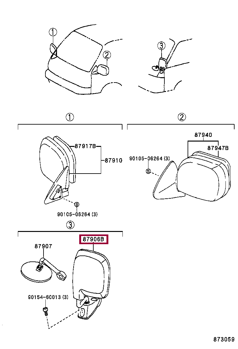 87906-95J00, MIRROR SUB-ASSY, OUTER REAR VIEW, LH
