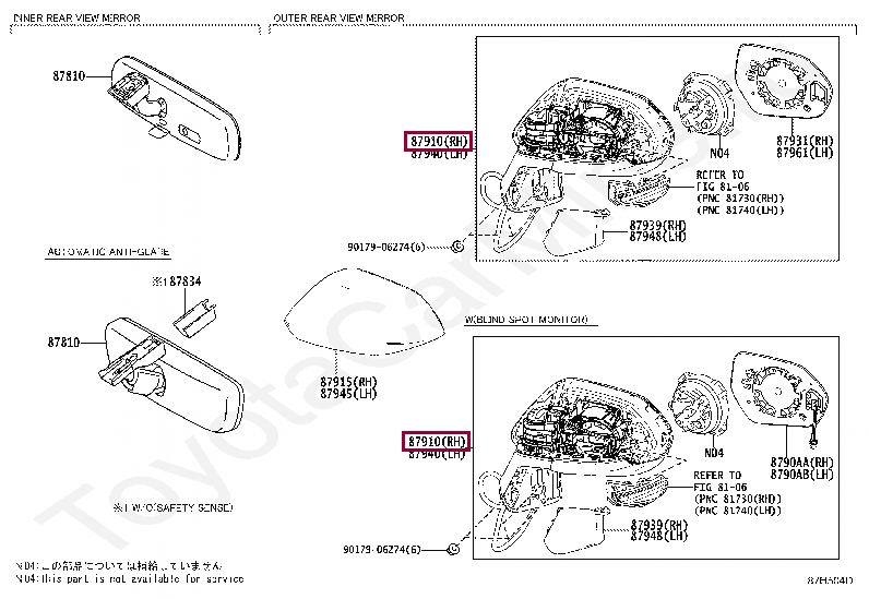 87910-02L50, MIRROR ASSY, OUTER REAR VIEW, RH