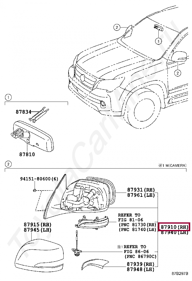 87910-60Q11, MIRROR ASSY, OUTER REAR VIEW, RH