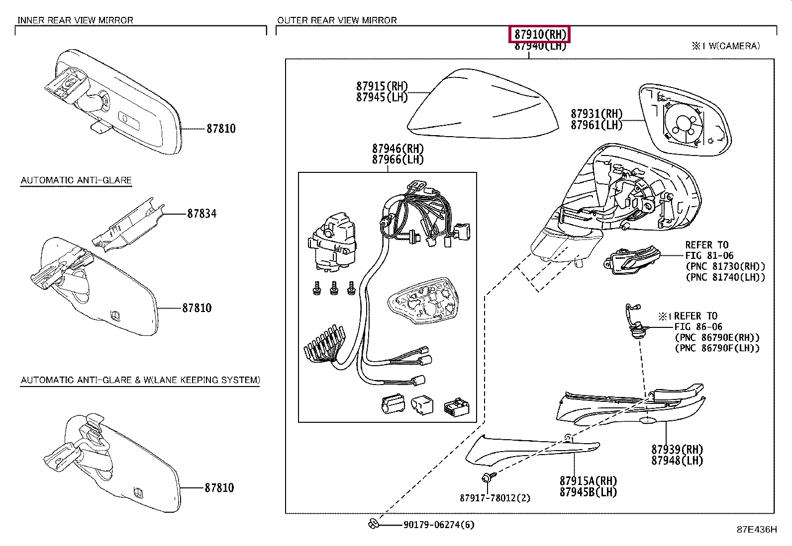87910-78170-A0, MIRROR ASSY, OUTER REAR VIEW, RH