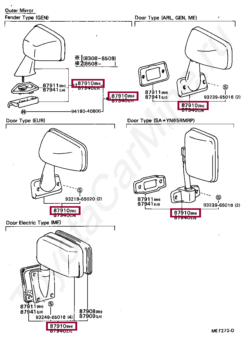 87910-89125, MIRROR ASSY, OUTER REAR VIEW, RH
