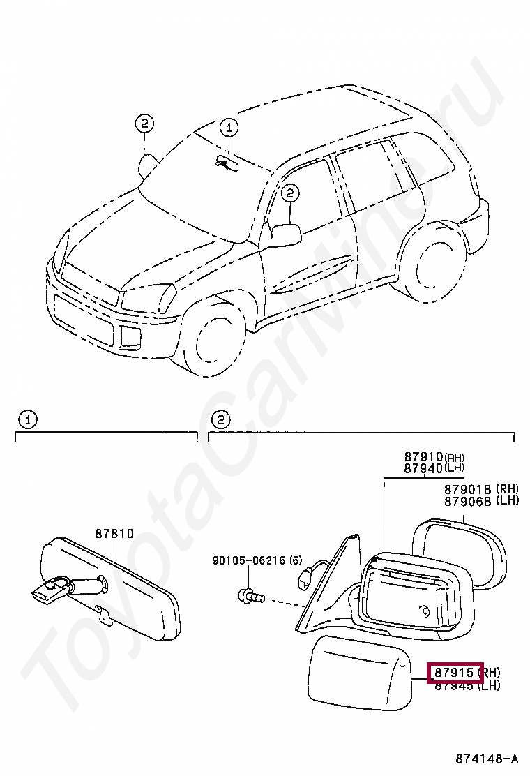 87915-44020-D3, COVER, OUTER MIRROR, RH