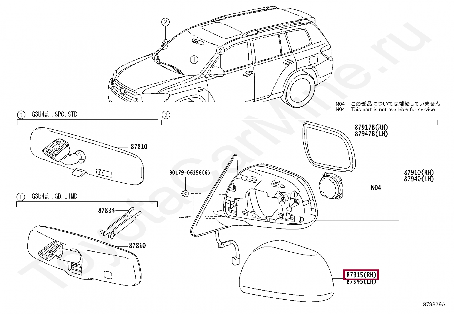 87915-48020-C0, COVER, OUTER MIRROR, RH