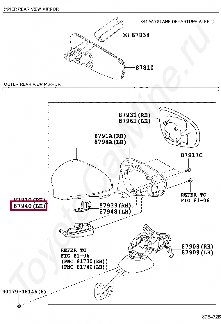 87940-24491-E0, MIRROR ASSY, OUTER REAR VIEW, LH