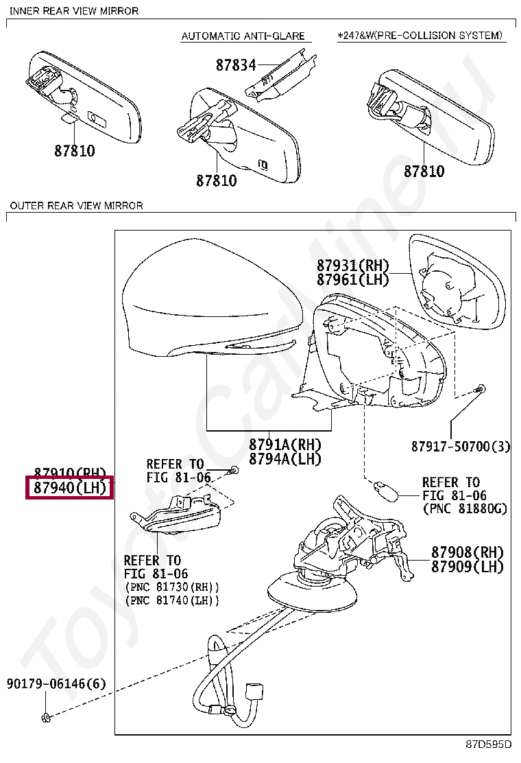 87940-53741-A2, MIRROR ASSY, OUTER REAR VIEW, LH