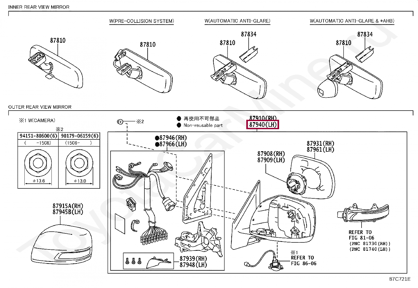 87940-60P10, MIRROR ASSY, OUTER REAR VIEW, LH