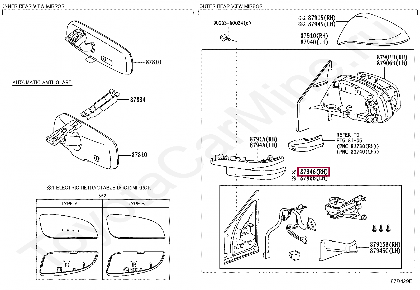 87946-42C10, Поворотный механизм правого зеркала