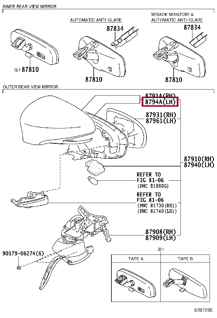 8794A-76070-E0, COVER, OUTER MIRROR, LH NO.2