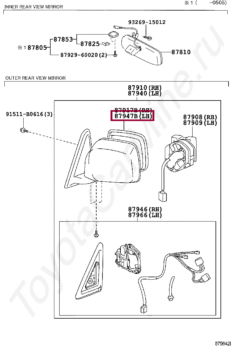 87961-60730, MIRROR, OUTER REAR VIEW, LH