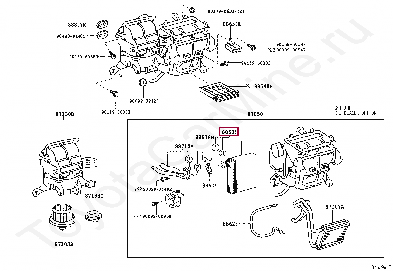88501-02160, EVAPORATOR SUB-ASSY, COOLER, NO.1