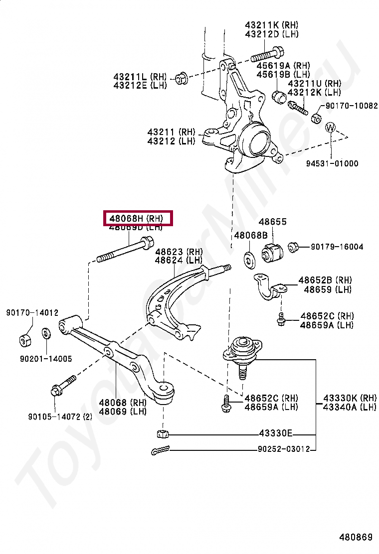 90105-14073, BOLT(FOR FRONT SUSPENSION LOWER ARM NO.1 LH)