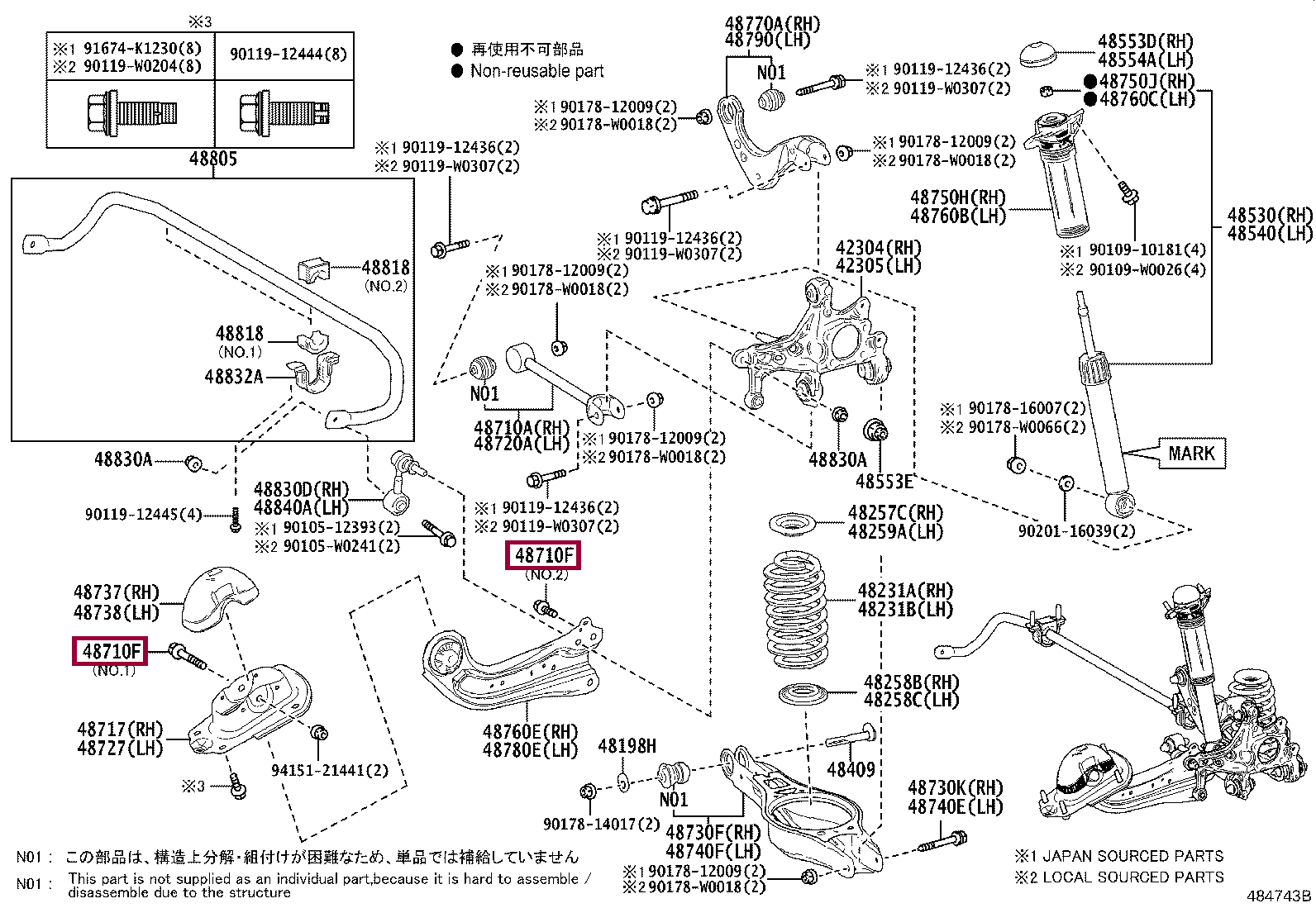 90105-14195, BOLT(FOR REAR TRAILING ARM)