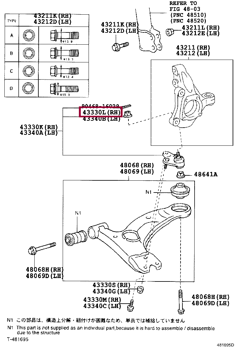 90171-14013, NUT, CASTLE (FOR FRONT LOWER BALL JOINT LH)