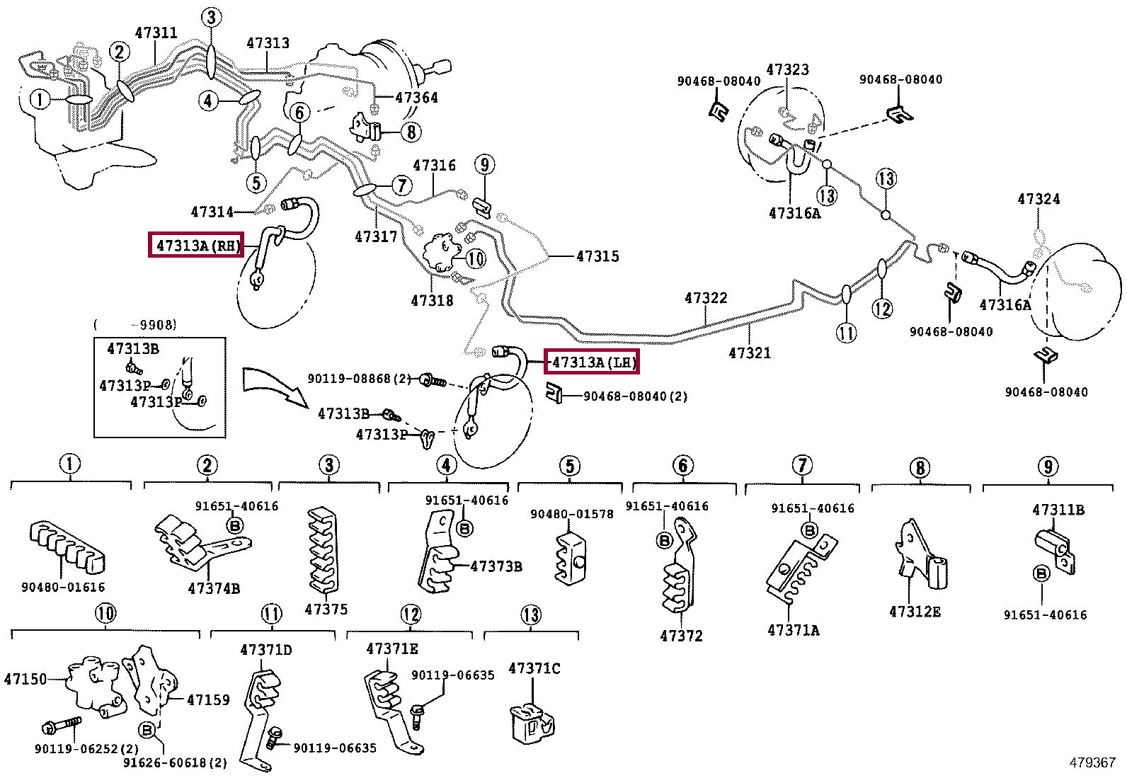 90947-02916, HOSE, FLEXIBLE, NO.1(FOR FRONT)