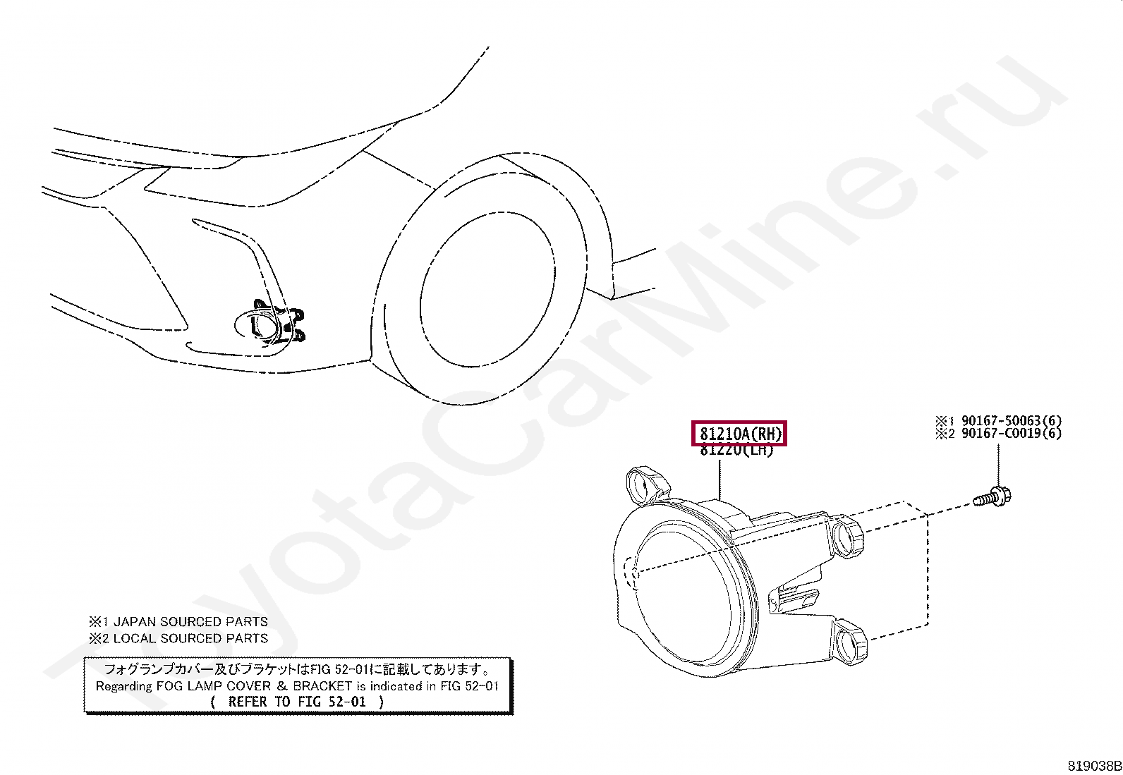 Фара противотуманная правая Toyota Harrier