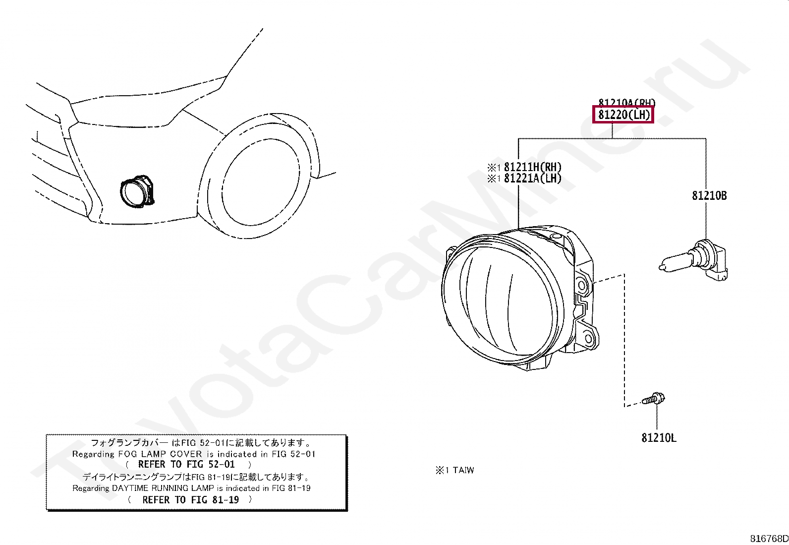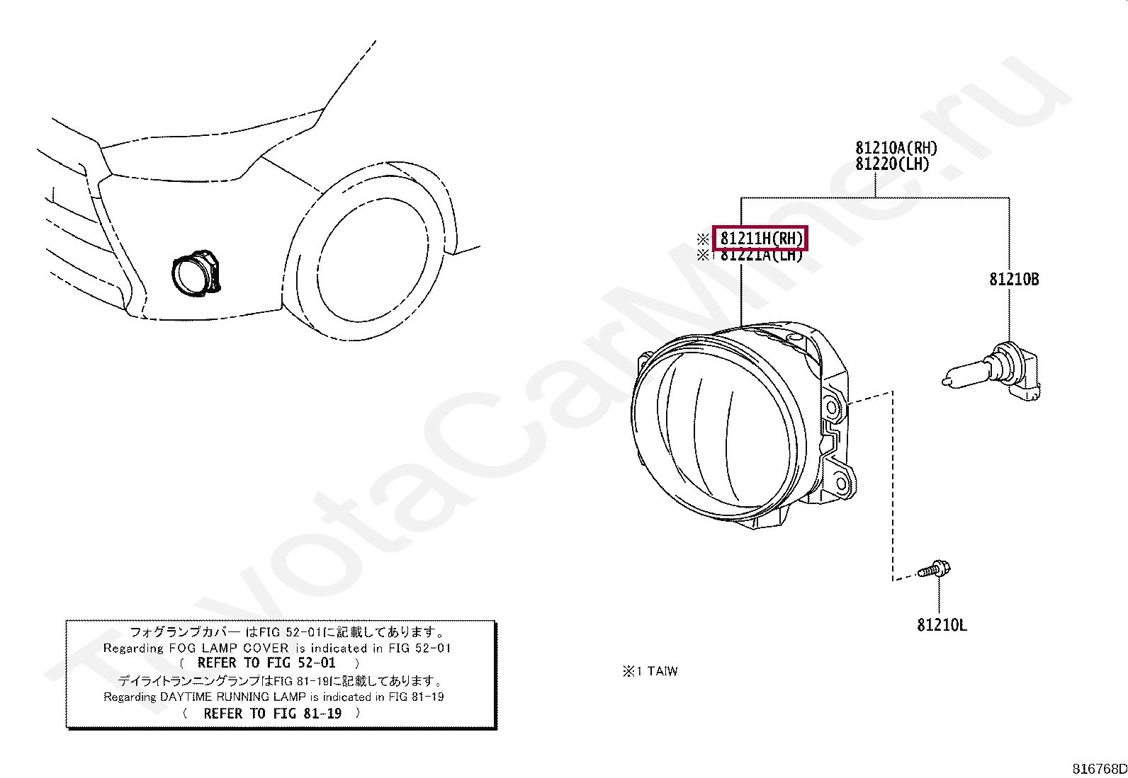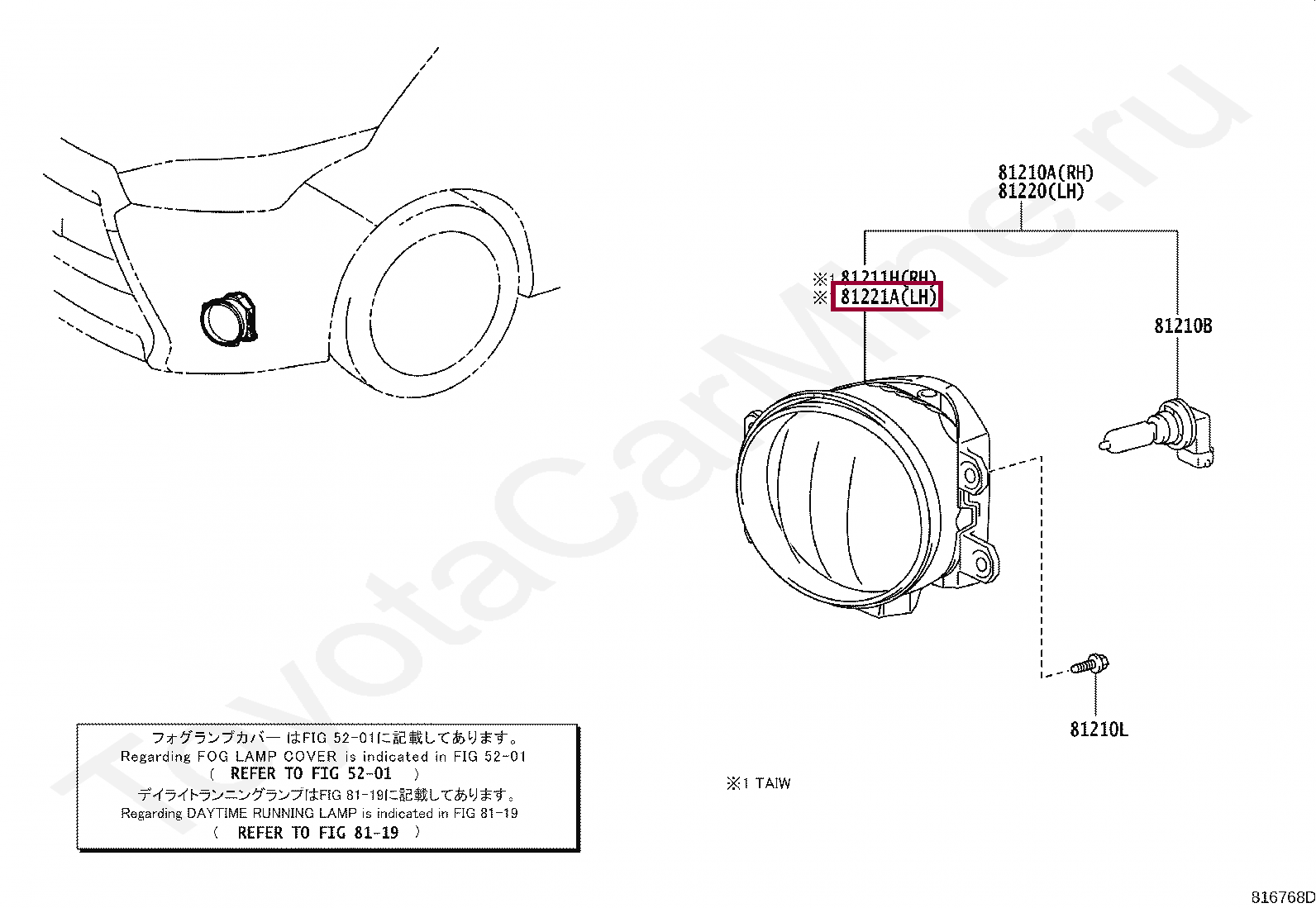 Противотуманная фара Ярис