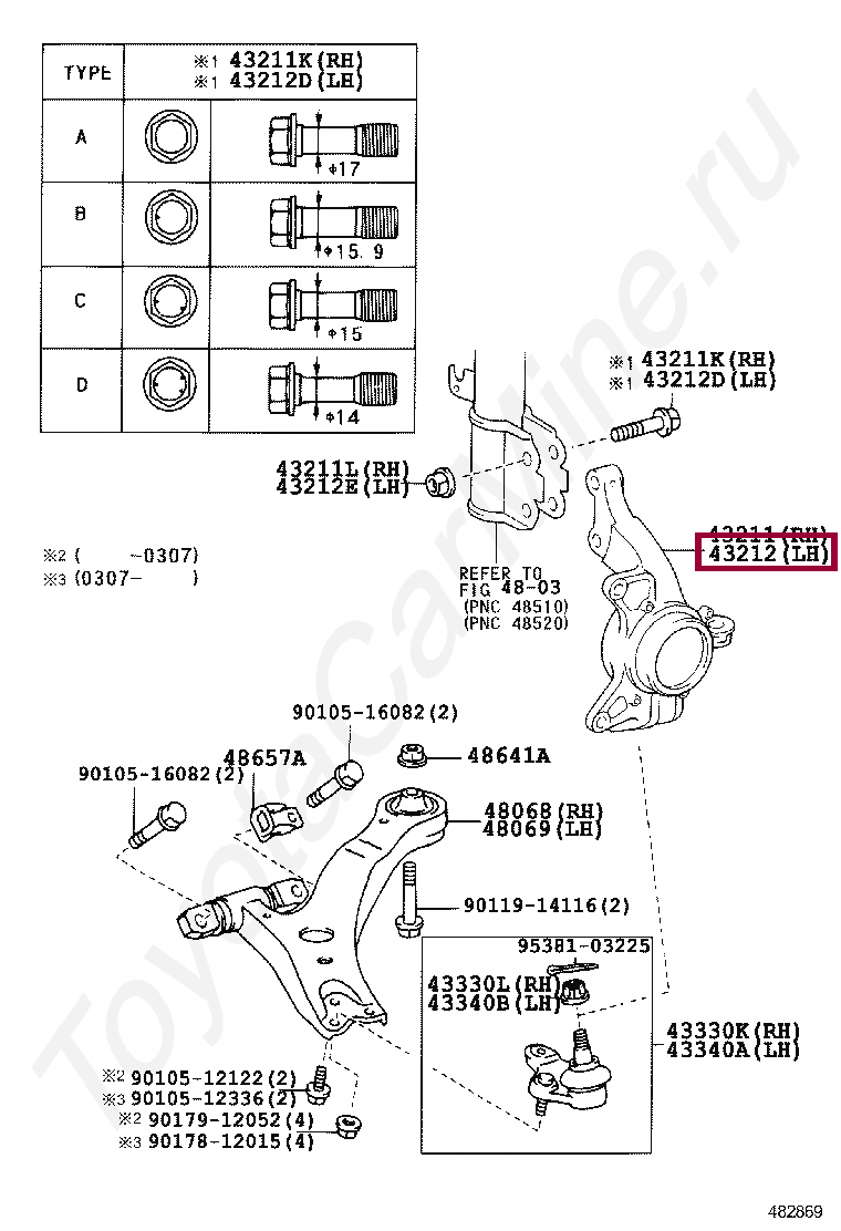 Кулак поворотный передний левый Toyota Kluger